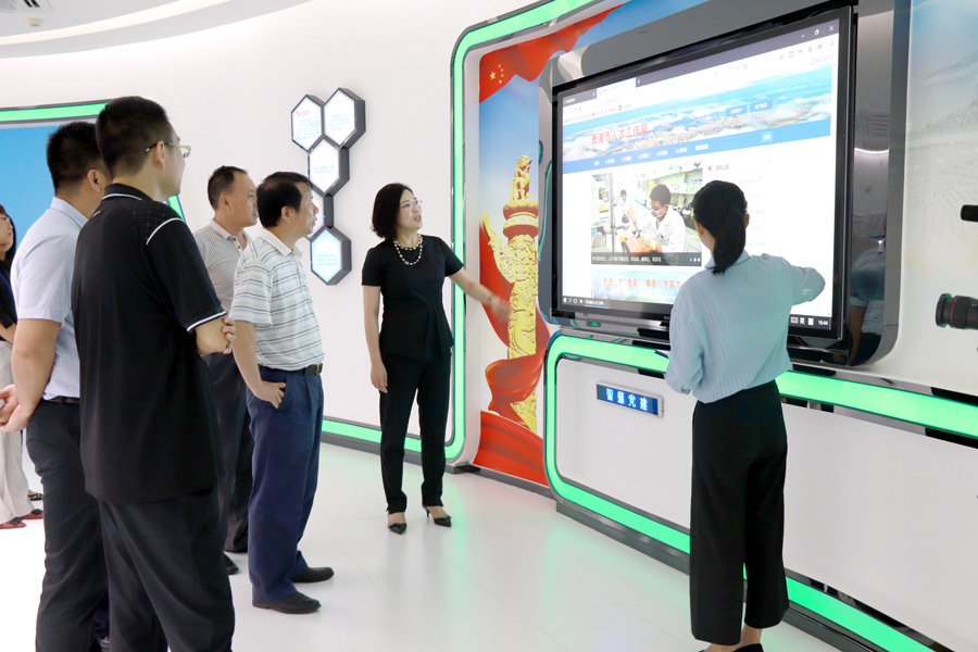 2018年(nián)7月(yuè)6日,自(zì)治區績效辦專職副主任施漢飛(fēi)、貴港市(shì)績效辦主任楊福華、市(shì)大數據應用服務中心吳展昭主任、市(shì)績效辦科室相(xiàng)關人員(yuán)一(yī)行到(dào)智慧城(chéng)市(shì)管理中心考察調研。廣西(xī)中科曙光(guāng)董事(shì)長(cháng)張愛萍進行熱情接待并親自(zì)作參觀引導和講解。