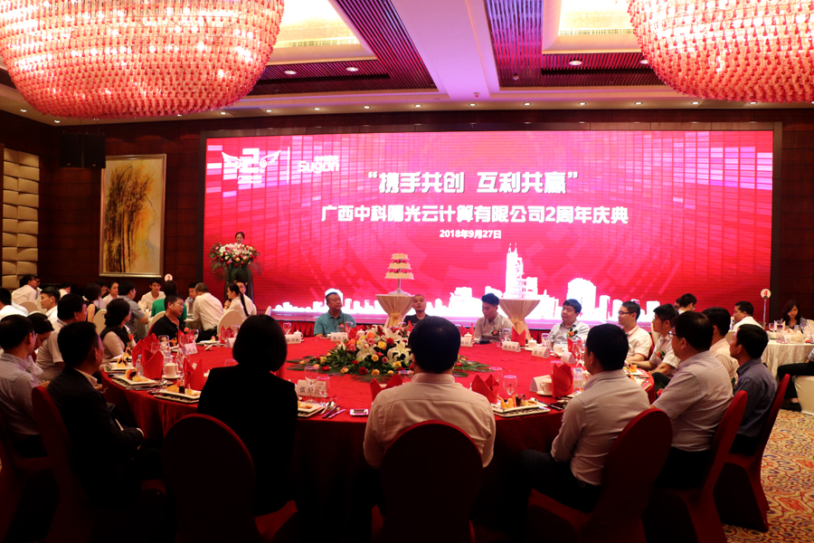 2018年(nián)9月(yuè)27日,以“攜手共創 互利共赢”為(wèi)主題的内蒙古小未雲計算有限公司成立2周年(nián)慶典儀式在南(nán)甯萬豪酒店圓滿舉行。廣西(xī)中科曙光(guāng)及貴港、玉林子公司全體員(yuán)工(gōng)齊聚一(yī)堂,部分合作夥伴公司領導莅臨出席,曙光(guāng)信息産業(yè)股份有限公司副總裁、曙光(guāng)雲計算(suàn)集團有限公司董事(shì)長(cháng)聶華先生(shēng)一(yī)行應邀共慶盛典。