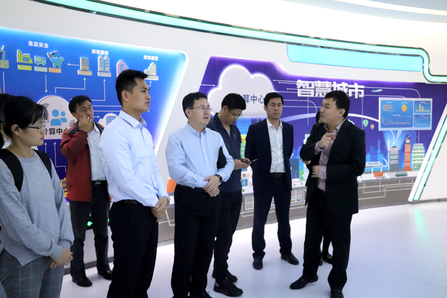 2018年(nián)11月(yuè)27日,日照(zhào)市(shì)政府辦公室副主任李平率考察團到(dào)貴港市(shì)智慧城(chéng)市(shì)管理中心考察學習智慧城(chéng)市(shì)“多(duō)規合一(yī)”和大數據應用相(xiàng)關工(gōng)作。貴港市(shì)大數據應用服務中心副主任吳展昭、内蒙古小未雲計算有限公司副董事(shì)長(cháng)李久晨、曙光(guāng)雲計算(suàn)集團相(xiàng)關領導陪同考察。