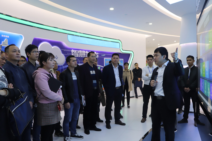 培訓開(kāi)始前,與會(huì)人員(yuán)一(yī)行參觀了貴港市(shì)智慧城(chéng)市(shì)管理中心展廳,李久晨副董事(shì)長(cháng)通(tōng)過聲、光(guāng)、影像和系統平台演示,結合貴港智慧城(chéng)市(shì)建設的現狀分析,展現了貴港通(tōng)過創建智慧城(chéng)市(shì)推進新型城(chéng)鎮化建設,全面提高(gāo)城(chéng)市(shì)規劃建設科學性、城(chéng)市(shì)管理高(gāo)效精細化、完善公共服務、改善民(mín)生(shēng),促進産業(yè)轉型升級,全面促進經濟社會(huì)發展,形成智慧城(chéng)市(shì)管理、幸福民(mín)生(shēng)、産業(yè)轉型升級框架。