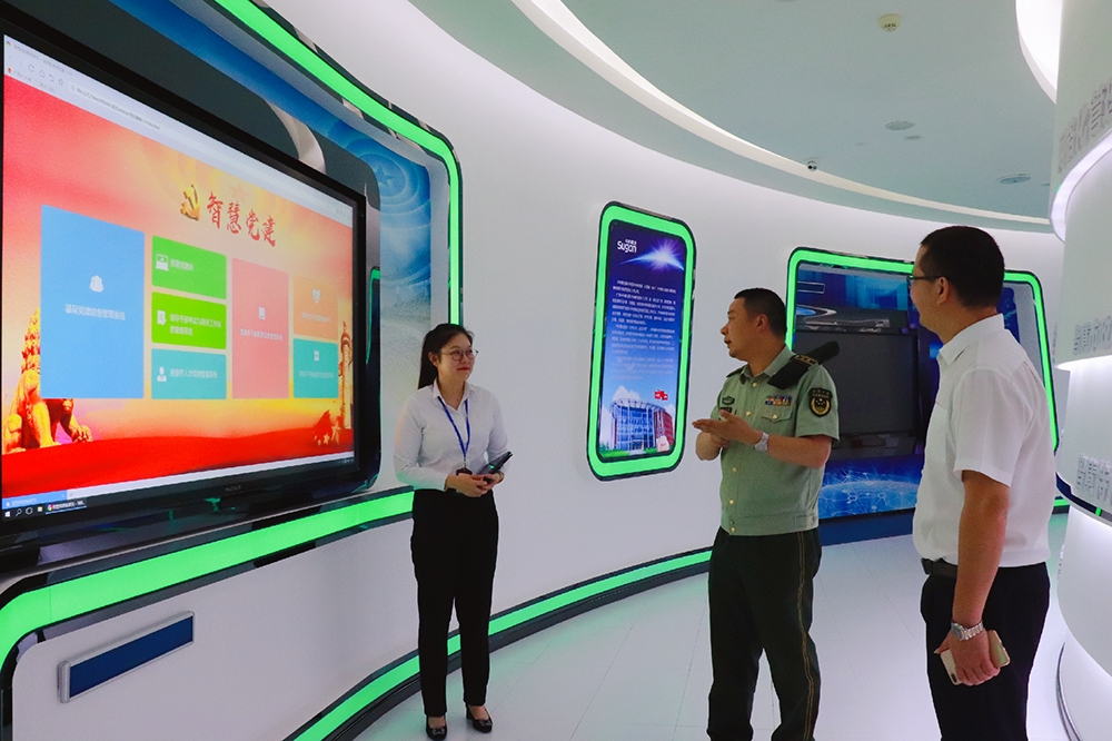 5月(yuè)30日,武警貴港支隊政委周自(zì)軍帶領黨務幹部到(dào)貴港市(shì)智慧城(chéng)市(shì)管理中心參觀黨員(yuán)活動室,現場了解廣西(xī)貴港市(shì)中科曙光(guāng)雲計算(suàn)有限公司在創新開(kāi)展基層黨建工(gōng)作中的先進經驗和做法,對貴港中科曙光(guāng)建設黨員(yuán)活動室的亮點、特色做法、創新理念給予高(gāo)度評價,一(yī)緻表示要借鑒好做法、打開(kāi)新思路(lù),全面提升支隊黨建文化陣地建設工(gōng)作整體水(shuǐ)平。随後,一(yī)行人參觀了智慧城(chéng)市(shì)管理中心展示區,了解當前貴港市(shì)智慧城(chéng)市(shì)建設的整體狀況以及智慧黨建闆塊建設的進展及成效,對智慧黨建在實際應用中起到(dào)的作用表示贊賞。