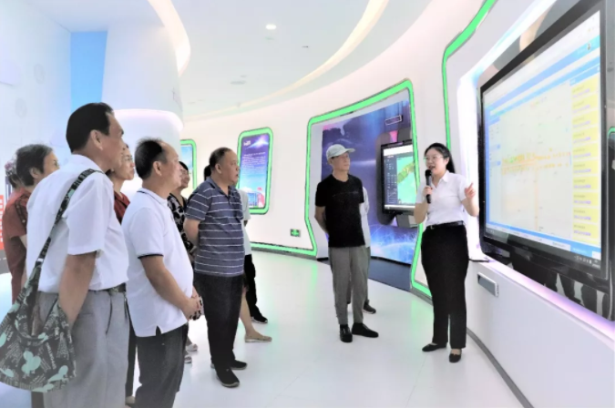 廣西(xī)貴港市(shì)中科曙光(guāng)講解員(yuán)向參觀學習一(yī)行介紹智慧市(shì)政