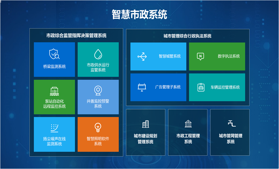 智慧市(shì)政要通(tōng)過整合基礎設施信息資源,實現對城(chéng)市(shì)基礎設施的精準管理、動态監控和高(gāo)效維護。通(tōng)過對市(shì)政管理業(yè)務系統的信息化和實時互動,促進業(yè)務管理能(néng)力和對外服務能(néng)力的提高(gāo)。