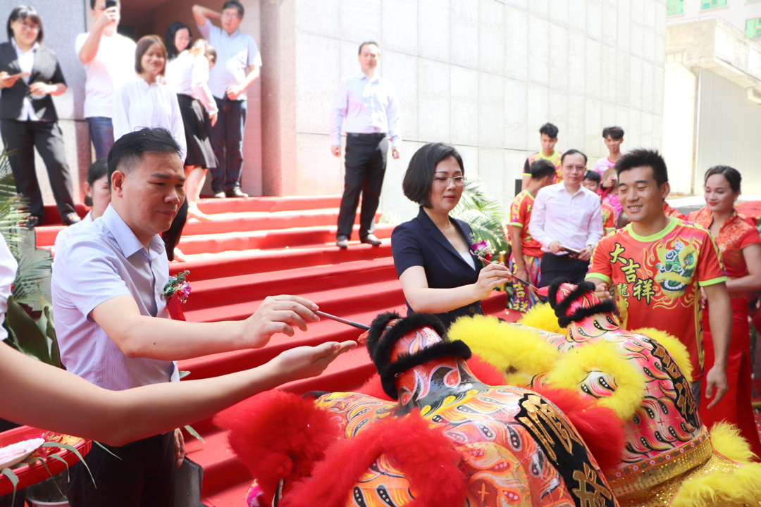 儀式上(shàng),吳海斌會(huì)長(cháng)等嘉賓依次緻辭并獻上(shàng)誠摯的祝福。随後,張愛萍董事(shì)長(cháng)與他們一(yī)起進行了剪彩儀式,并為(wèi)舞獅點睛,在熱烈的掌聲中,共同為(wèi)公司揭牌。