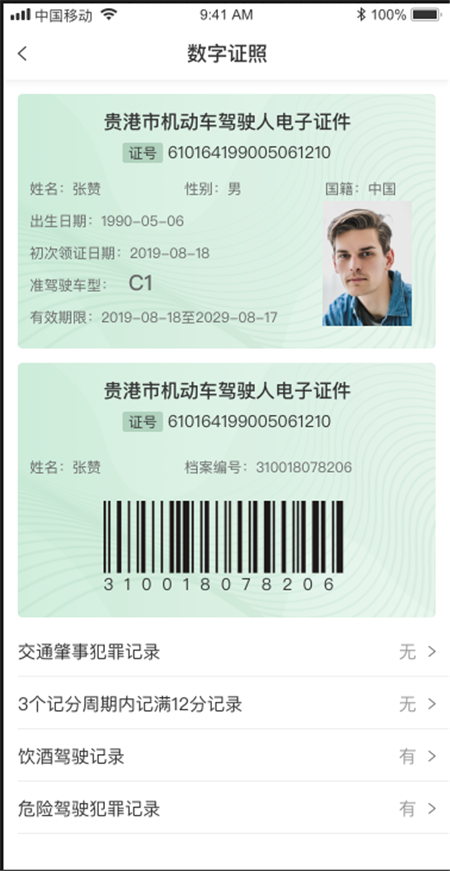 “電(diàn)子駕照(zhào)”突破了現有紙(zhǐ)質證照(zhào)的限制,具有駕駛證基本信息,飲酒後駕駛記錄、記分周期内記滿12分記錄、危險駕駛犯罪及交通(tōng)肇事(shì)犯罪記錄查詢等功能(néng)。當前在貴港範圍内,貴港“電(diàn)子駕照(zhào)”除了可以在申請辦理相(xiàng)關政務事(shì)項中應用外,還(hái)可以在日常交通(tōng)出行活動中使用。比如遇到(dào)交警檢查時,駕駛員(yuán)可以出示“電(diàn)子駕駛證”讓交警現場進行核驗,無須出示紙(zhǐ)質版的駕駛證。
