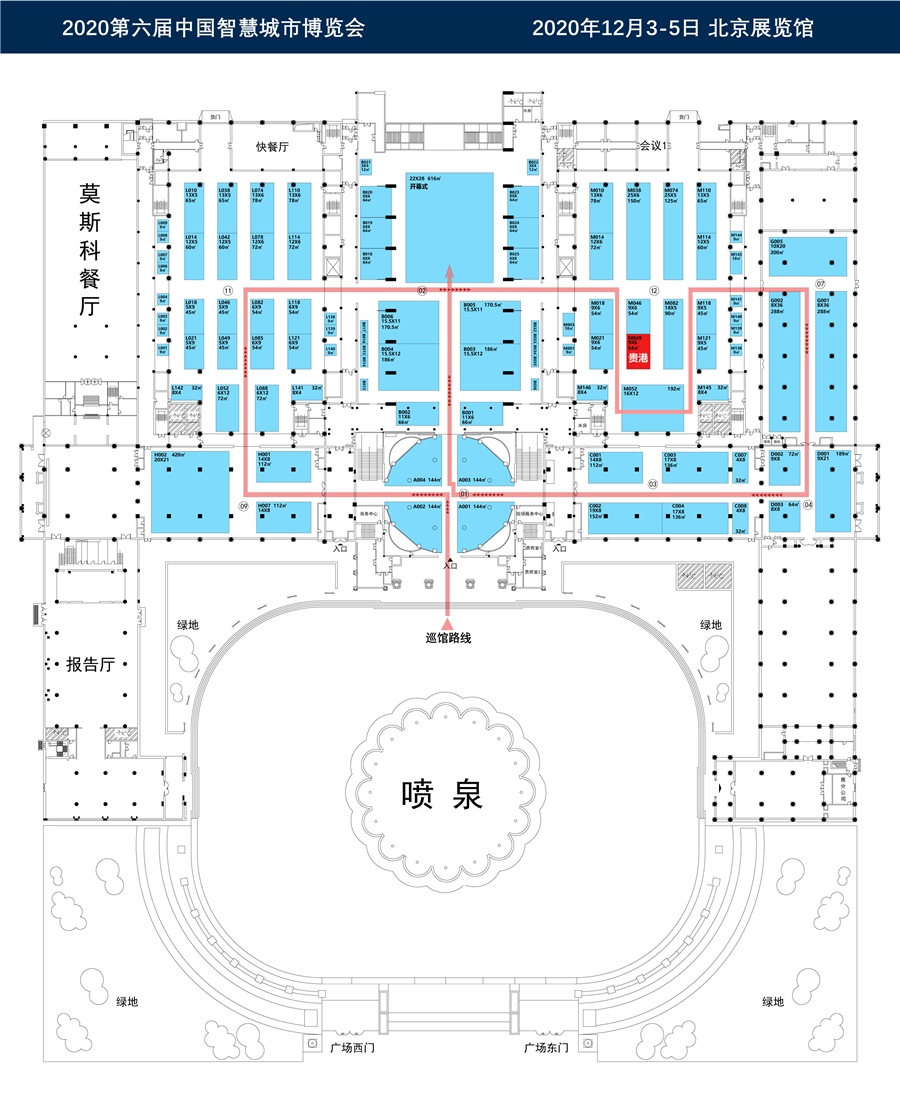 (圖:智博會(huì)展位分布圖,貴港展位位于12号館M049)