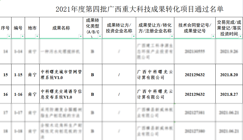 近日,自(zì)治區科技(jì)廳公示了2021年(nián)度第四批廣西(xī)重大科技(jì)成果轉化項目,廣西(xī)中科曙光(guāng)報(bào)送的“城(chéng)市(shì)管網管理系統V1.0”、“交通(tōng)誘導信息發布系統1.0”兩項軟件(jiàn)項目入選為(wèi)廣西(xī)重大科技(jì)成果轉化項目。